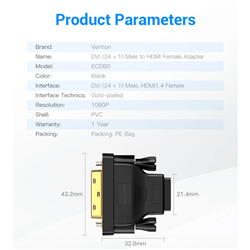 Type: DVI to HDMI Adapter